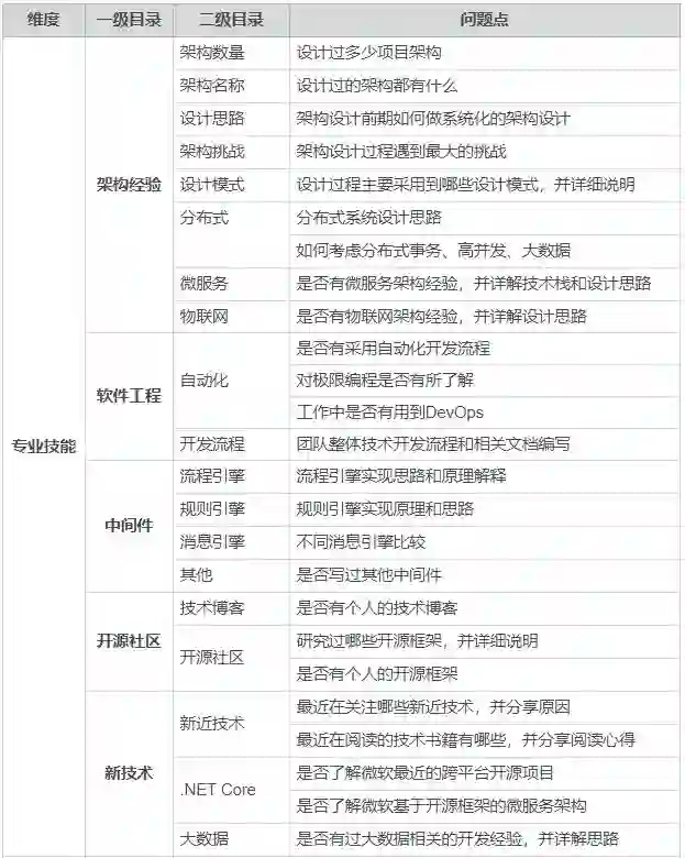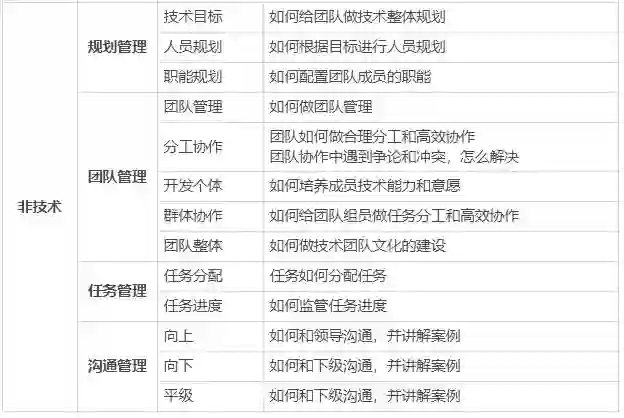 这里参考我尊敬的刘老师的建议,按照时间维度,了解对方事前、事中、事后如何做技术管理。事前是如何做任务规划,这些规划是否遵循架构标准,是否遵循SMART原则;事中是否有效执行,风险如何做预案;事后有没有归纳总结等。