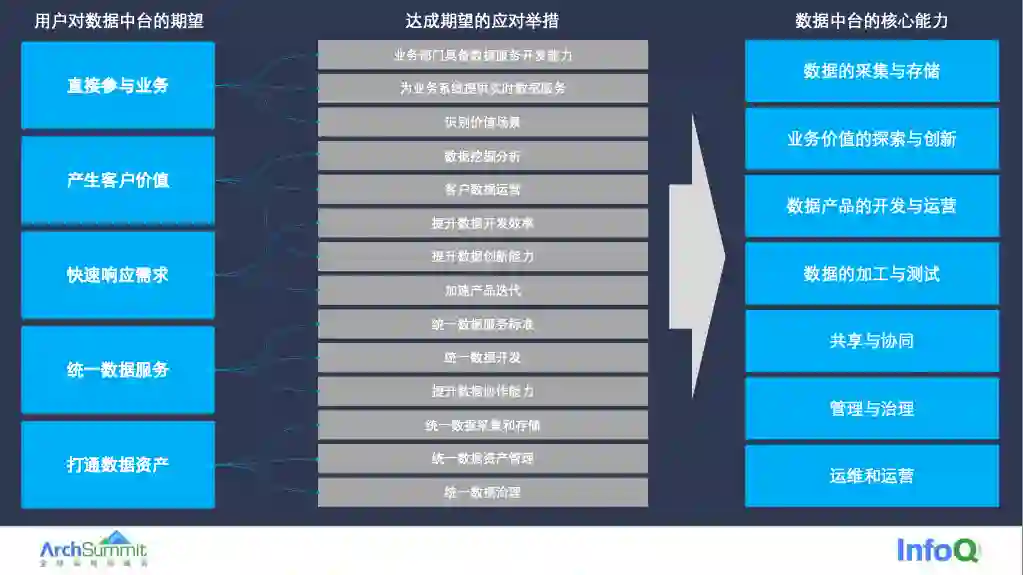 第一,直接参与业务。无论是架构师、IT 人员还是数据人员,大家都面临着领导的挑战:你开发数据的业务价值是什么?企业希望数据中台所代表的数据能力,不仅仅是完成一个报表,而是要提升业务效率,直接给企业带来价值。