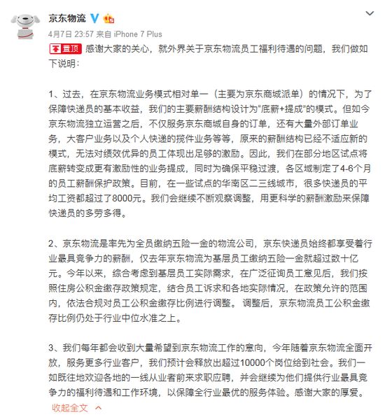 随后,京东方面迅速作出回应,表示京东物流独立运营后,不仅服务京东商城自身的订单,还有大量外部订单业务,大客户业务以及个人快递的揽件业务等,原来的薪酬结构已经不适应新的模式,因此在部分地区试点将底薪转变成更有激励性的业务提成。关于降低公积金系数,则是在政策允许的范围内,依法合规对员工公积金缴存比例进行调整。