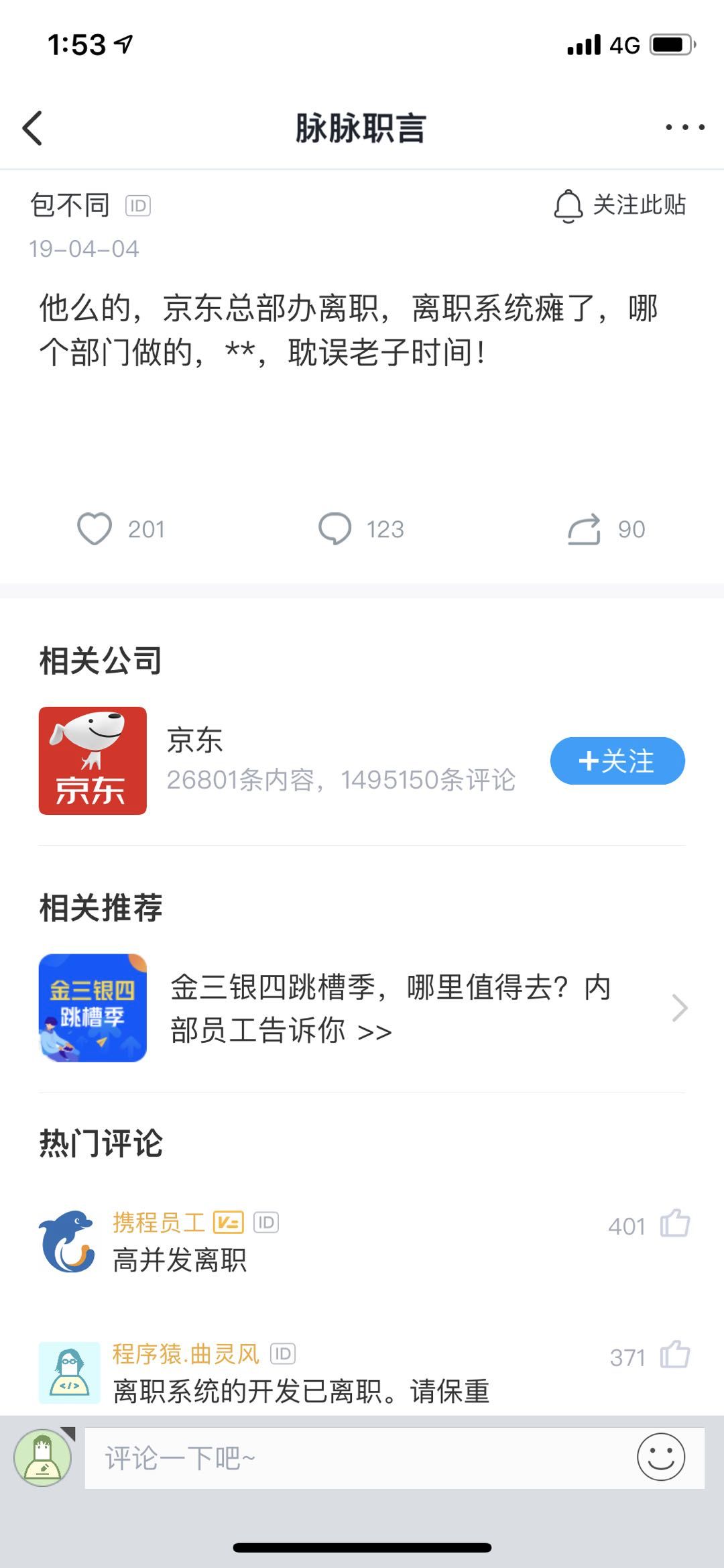 除了高管走马灯般地退场,普通员工的离职潮犹有过之。笔者曾在 V2EX、脉脉等论坛上看到多个吐槽京东离职系统瘫痪的贴子,网友戏称为”高并发离职“。