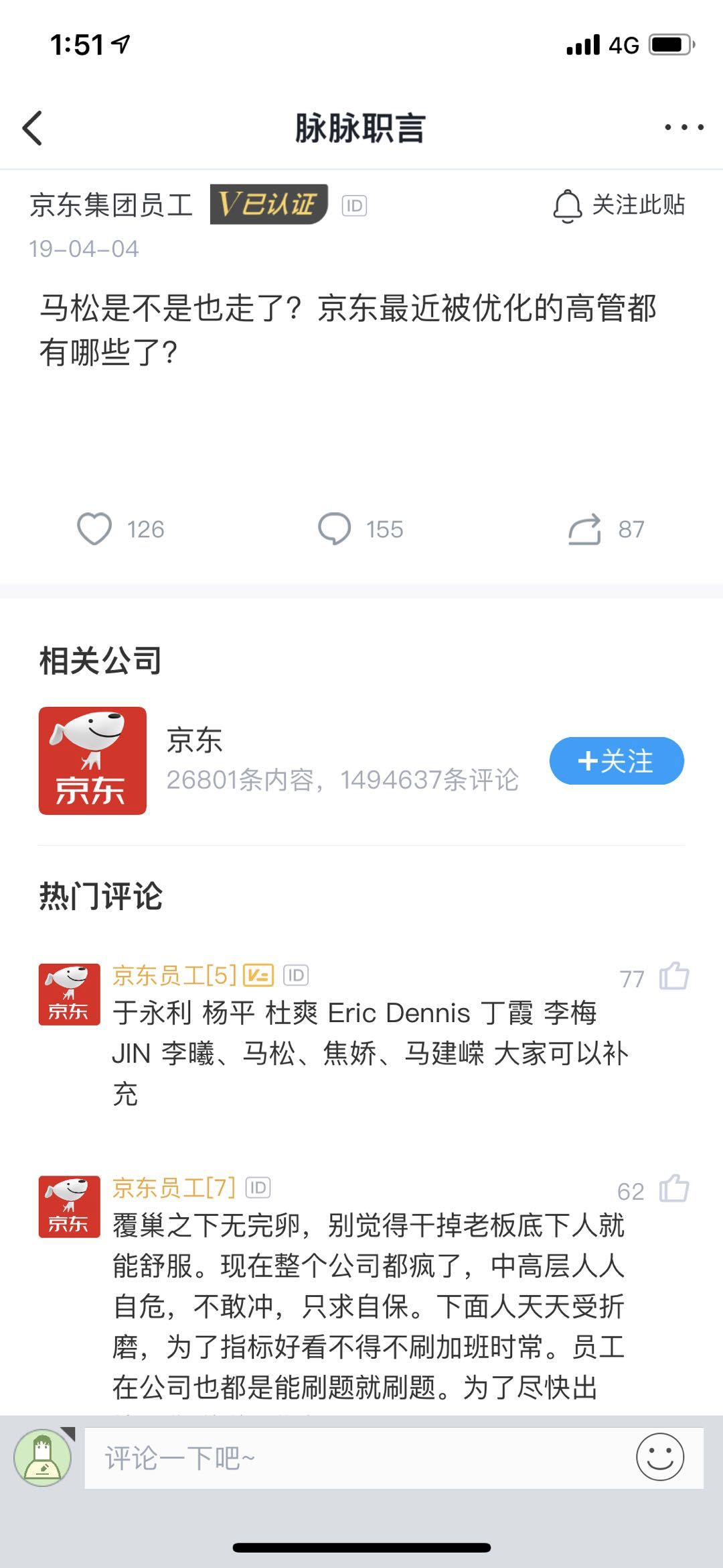 从 3 月底到 4 月初的一段时间内,京东已经被爆出一个月走了 3 位 CXO(CTO 张晨、CLO 隆雨、CPO 蓝烨)。在这个数字之上的,还有近 20 位 VP。如果按照文章开头提到的三类人对照,这批高管或许应该对应了性价比低这个关键词。