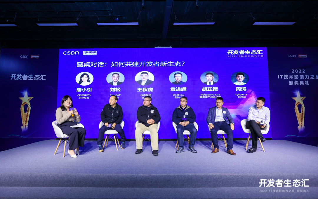 3 月 30 日,由 CSDN 和《新程序员》特别举办“开发者生态汇 —— 2022 IT 技术影响力之星”活动隆重举行,邀请了 CSDN 创始人&董事长、极客帮创投创始合伙人蒋涛,指令集创始人兼董事长潘爱民,微软(中国)CTO 韦青,中国开源软件推进联盟副主席刘澎,MegaEase CEO 陈皓,PingCAP 副总裁刘松,华为 openGauss 数据库产品总经理胡正策,中国电子技术标准化研究院研究室主任杨丽蕴,相泰投资创始合伙人、开物投资共同创始合伙人王秋虎,OneFlow 创始人袁进辉,Kyligence 副总裁周涛,CSDN 副总裁邹欣等嘉宾,围绕开源开放、新兴技术,共论开发者新生态构建之道。