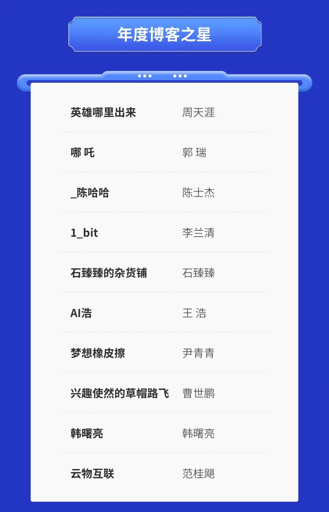 当技术化为资本,让荣耀光环加身!他们不仅用一串串代码谱写了企业、行业级别的应用,更持续为技术生态建设贡献了专业且坚定的力量。