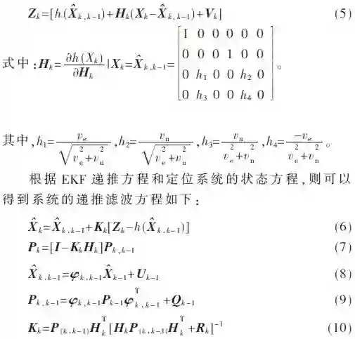 本系统首先通过扩展卡尔曼滤波(EKF)将北斗接收机接收到的数据进行滤波处理[7],建立系统模型消除由于高楼建筑物和树木遮挡导致定位精度偏差和数据丢失的问题。