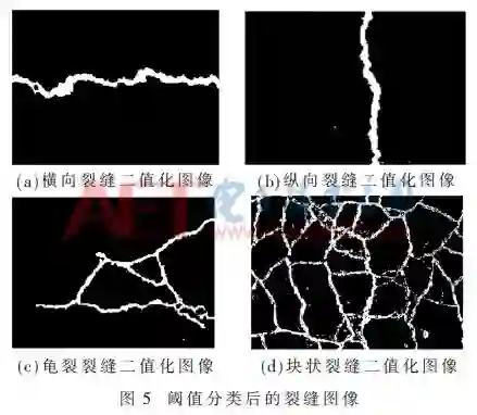 考虑到裂缝种类的特殊性,因此在裂缝判定分类时应该根据收集的大量不同裂缝图像的投影特征,设定不同的阈值标准且安排一定的顺序,设定阈值较高的应该事先判定分类,具体的设置方法在这里就不再赘述。