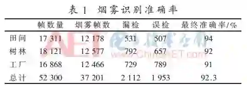 本文算法实现了对烟雾进行实时监控的目的,并在算法准确率和效率之间达到了较好的平衡。