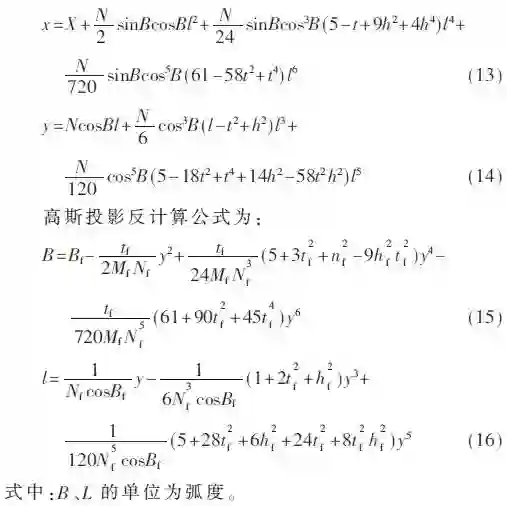 CGCS2000坐标(B,L)转换成平面直角坐标(x,y)的高斯投影坐标正算公式为: