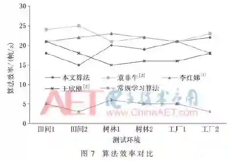 图7展示了各个烟雾检测算法的检测效率,本文算法在运行效率方面与当前主流方法相差不大,其中由于大运算量的小波分析影响,王欣刚[2]的算法相对效率较低,而常规的深度学习算法由于没有经过视频流的运动检测和数据降维的处理造成了大量的无用运算,因此效率很低无法运用到实际项目中。