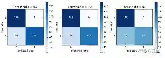 对于逻辑回归算法来说,我们还可以指定这样一个阈值,也就是说最终结果的概率是大于多少我们把它当成是正或者负样本。不用的阈值会对结果产生很大的影响。