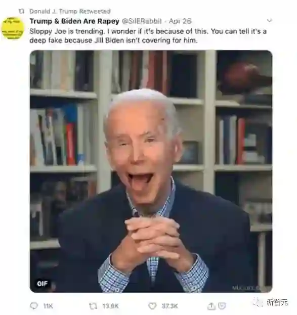 特朗普就曾在推特上转发过一个伪造的拜登吐舌头的视频,播放量一晚上就超过了1000万。