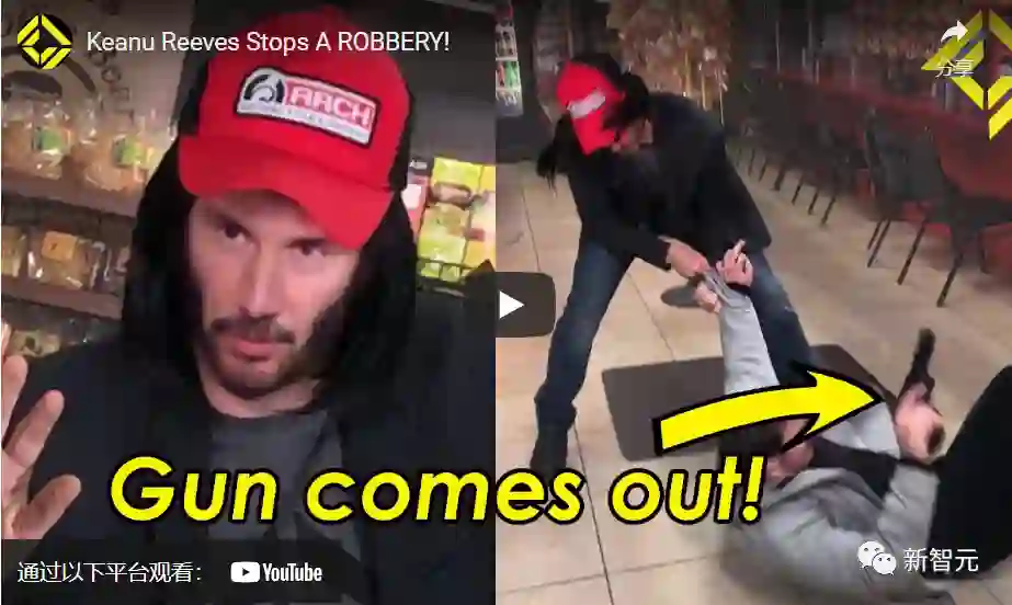在这个恶搞视频中,基努·里维斯刚刚制止了一场持枪抢劫。