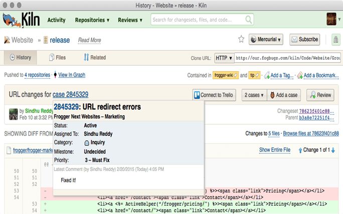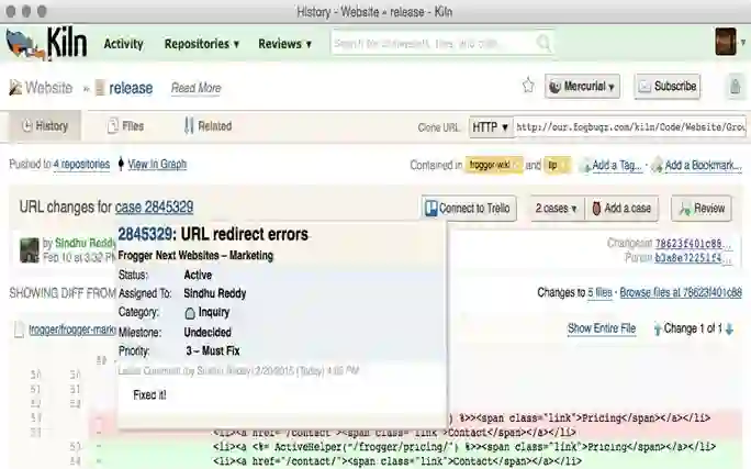 Kiln代码管理软件是基于Mercurial版本控制语言,但它也支持Git。由于它基于Hg,Kiln和相关的应用程序对windows很友好,对Python开发者也很不错。Kiln是FogBugz DevHub平台的一部分,该平台包含了分布式版本控制,也包含了bug跟踪和项目管理工具。Kiln最受欢迎的特性之一是,它将代码总览作为代码提交的一部分以供检视。