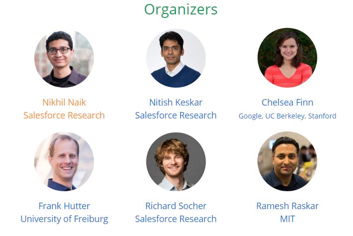 讲者:Nikhil Naik, Nitish Keskar, Chelsea Finn, Frank Hutter, Richard Socher, Ramesh Raskar