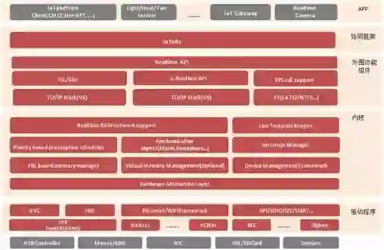 RT-Thread包含了一个自有的、传统的硬实时内核:可抢占的多任务实时调度器、信号量、互斥量、邮箱、消息队列、信号等。当然,它和传统的实时操作系统还存在着三种不同: