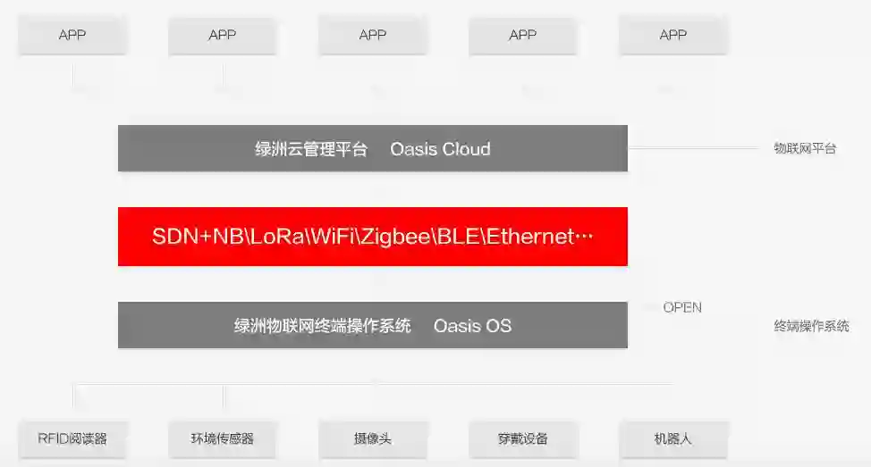 绿洲OS是新华三面向IoT领域,自主研发、免费开源的统一物联网操作系统和中间件平台,具有安全性、轻量级、低功耗、实时快速、开放性和互联互通等关键能力,为开发者提供一站式完整软件平台,有效降低开发门槛,大大缩短了开发周期。绿洲OS可用于智慧城市、工业、农业、校园、医院、可穿戴等IoT领域的智能硬件设备上承载,从而形成统一的数据格式上传至绿洲云平台。