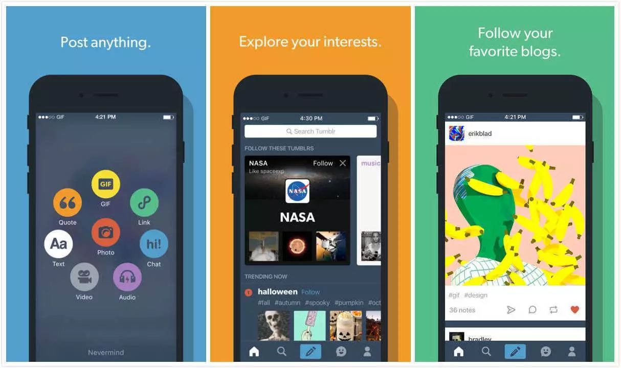 你使用它可以分享文字,图片,视频等等。而且你在上面会发现一些不错的博主,不乏有设计师,摄影师,画家等等。