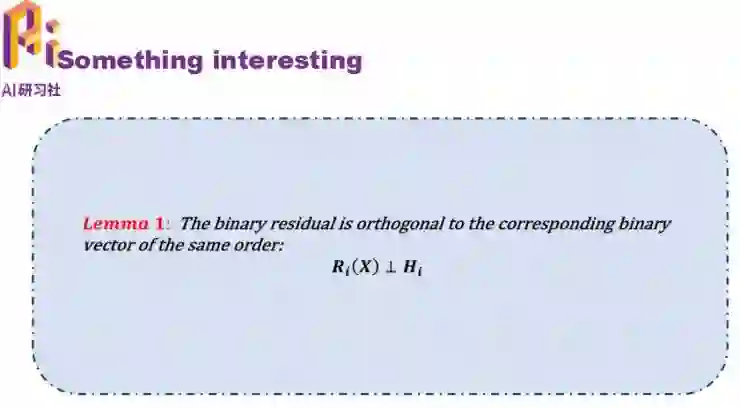 这是一些HORQ框架下理论上比较有趣的结果。结论一:二值的残差一定是跟相应阶数下的二值向量垂直。