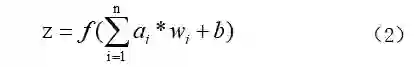其中a表示输入,w表示权值,一个表示连接的有向箭头可以这样理解:在初端,传递的信号大小仍然是a,端中间有加权参数w,经过这个加权后的信号会变成aw,因此在连接的末端,信号的大小就变成了aw。在神经元处加权信号求和通过函数f就得到了输出Z,公式如下: