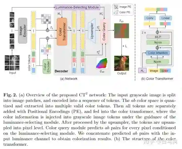 我们造了一个自动着色的Transformer模型,以color tokens作为辅助,实现了目前最好的着色效果。这里说的color tokens来自于经典工作《colorful image colorization》(CIC)中量化ab color space的思路,我们将每个格子都当做一个token,借助position embedding得到格子之间的位置关系,从而获得color token的颜色相对关系(离得远的色差大,否则小),从而设计一系列模块来引导color token监督着色。