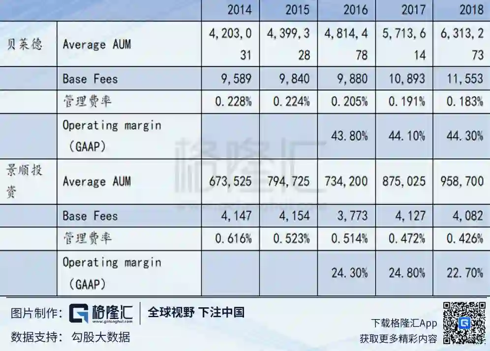 1、贝莱德AUM的规模已经足够大,全球规模第一,足以将高昂的运营成本分摊为很低的运营成本率,从而维持高毛利率。这从根本上缩窄了竞争者的行动范围,从而有效的为自己筑起了降低竞争烈度的护城河。因为指数策略在某种策略上是同质的,竞争者很难在投资绩效上展开竞争,那么费率竞争可能更直接,但一般机构都干不过贝莱德。2018年贝莱德对AUM的平均取费标准已经降到了0.183%,景顺投资还维持在0.426%,而贝莱德保持这44.3%的毛利率,景顺投资只有22.7%,竞争优劣势一眼可见。