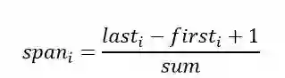 词跨度是指一个词或者短语字文中首次出现和末次出现之间的距离,词跨度越大说明这个词对文本越重要,可以反映文本的主题。一个词的跨度计算公式如下: