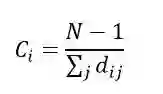 节点的接近性是指节点到其他节点的最短路径之和的倒数,表示的是信息传播的紧密程度,其计算公式为: