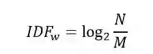 一个词的TF是指这个词在文档中出现的频率,假设一个词w在文本中出现了m次,而文本中词的总数为n,那么。一个词的IDF是根据语料库得出的,表示这个词在整个语料库中出现的频率。假设整个语料库中,包含词w的文本一共有M篇,语料库中的文本一共有N篇,则