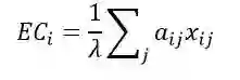特征向量的思想是节点的中心化测试值由周围所有连接的节点决定,即一个节点的中心化指标应该等于其相邻节点的中心化指标之线性叠加,表示的是通过与具有高度值的相邻节点所获得的间接影响力。特征向量的计算公式如下: