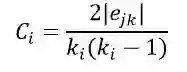 节点的集聚系数是它的相邻的节点之间的连接数与他们所有可能存在来链接的数量的比值,用来描述图的顶点之间阶级成团的程度的系数,计算公式如下: