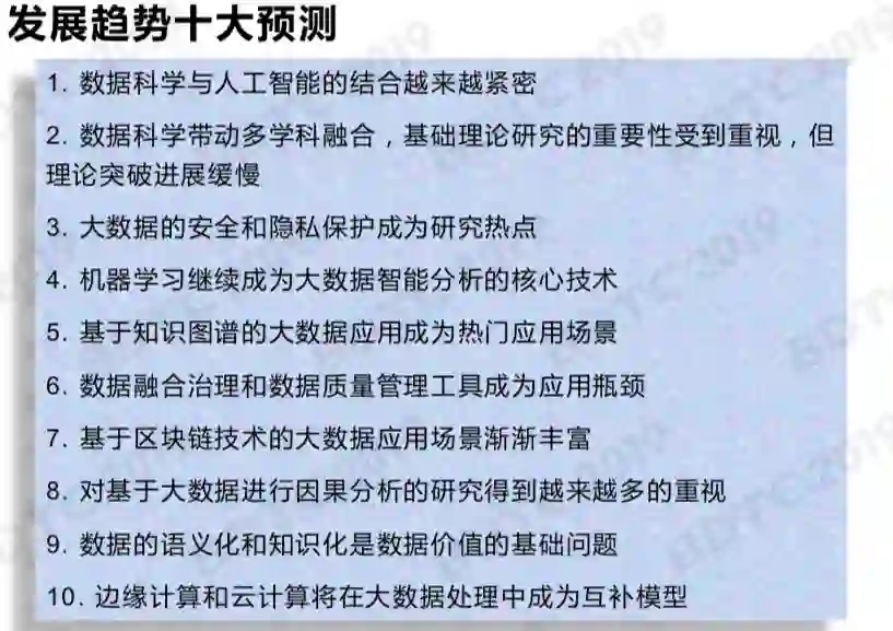 报告总结:在数字经济时代,数据已经成为了发展的基石,趋势预测中出现的“新面孔”很多都是与数据发展的新阶段产生的特定问题对应,比如数据融合、数据质量管理、因果性分析等。一个事物发展到一个阶段,总会产生与这个阶段相对应的特定问题,这些问题的出现标志着数据应用发展的新阶段,虽然现在还没有特别深入的应用,但是这些问题的出现已经为突破新的应用带来了曙光。