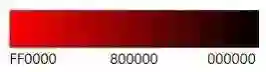 我想这是本文中最令人困惑的图片。基本上,我想把 Y 轴(从上到下)上的色彩从红色变成黑色,意味着亮度从 1 到 0,而 X 轴(从左到右)上的色彩从红色变成白色,意味着饱和度从 1 到 0,我本来以为白色和黑色也会混合,右下角会变成灰色,但情况并非如此。只要 R、G、B 有相同的值,色调和饱和度就失去了意义。只有亮度对白色、灰色和黑色(右边界)的色彩有影响。更糟糕的是整个下边界只有黑色,因为一旦亮度为 0,色调和饱和度又变得毫无意义了。