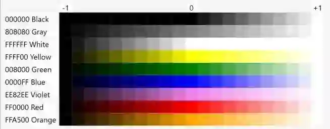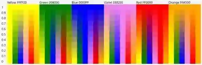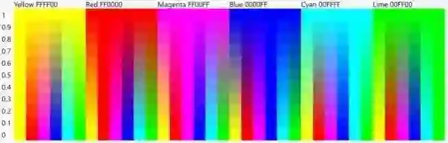 当我们逐渐改变 R、G 或 B 时,会得到类似彩虹的东西。