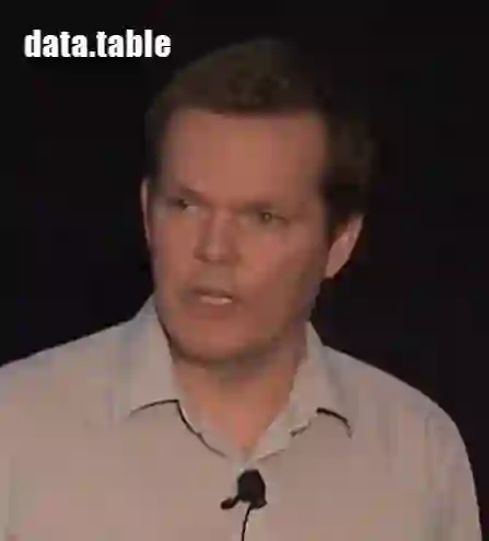 本视频来自 YouTube,是 Matt Dowle 在 useR! 2014年洛杉矶会议上的演讲。在这段21分33秒的演讲中,Matt 回顾了自己在伦敦大投行的工作经历(雷曼兄弟以及所罗门兄弟)、自己与 R 的偶遇以及开发 data.table 的动机。演讲全程笑声不断,充分体现了腐国人一本正经说笑话的能力╮(╯▽╰)╭