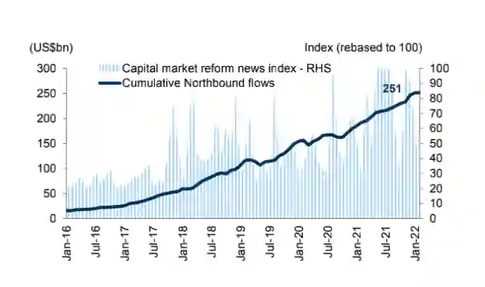 外资进入制度改革:之所以说A股可投资性增强,这与中国的一系列开放举措息息相关,包括QFII(合格境外投资者)制度改革、互联互通机制扩容、产品不断丰富(例如MSCI中国A50互联期货)以及市场结构演变。
