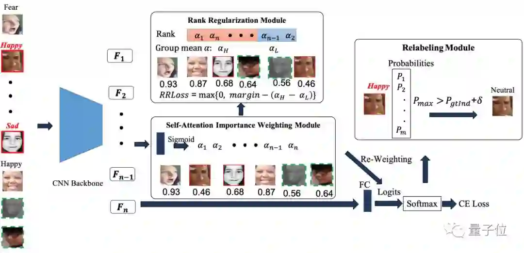 具体来说,SCN从两个不同的方面抑制了不确定性:⑴在小批量上的自关注机制,通过排名规则化对每个训练样本进行加权;⑵重新贴标签机制,在排名最低的组中修改这些样本的标签。