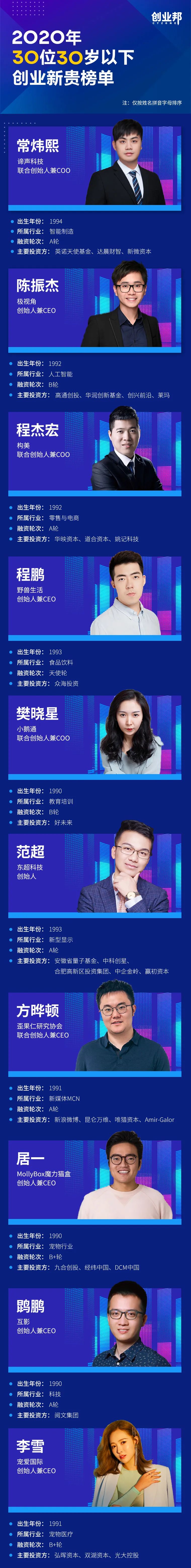 重磅 | 创业邦2020年30位30岁以下创业新贵榜单发布,后浪凶猛,Geek时代砥砺前行
