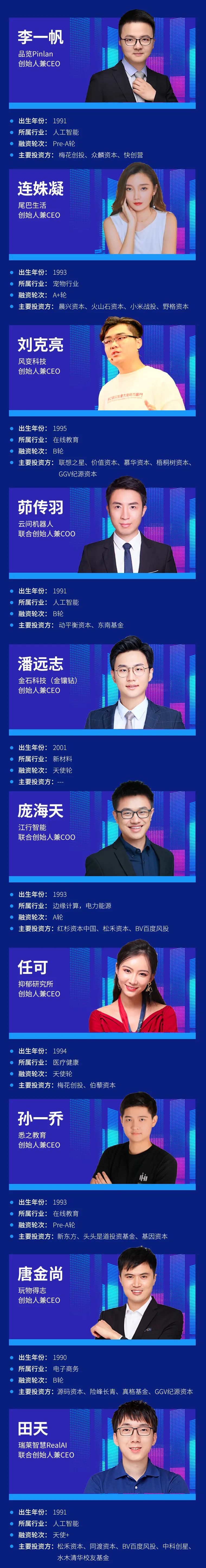 他们之中有年仅19岁的00后创业者,有11位连续创业者,超过50%聚焦在AI、先进制造、车联网等高科技行业,他们所创办的公司估值总额近130亿元,去年营收总额超过40亿元。他们运筹帷幄,将敏锐的商业洞察力和决策力发挥在人工智能、企业服务、教育培训、大消费、文娱等热门领域。