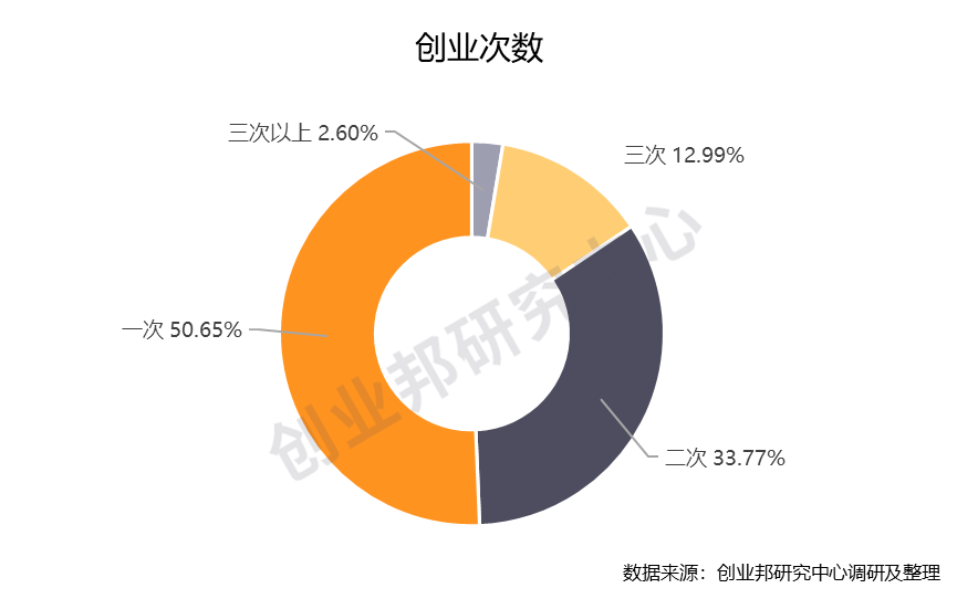 调研数据显示,30岁以下的创业者平均创业次数为1.7次,接近一半创业者有二次及以上的连续创业经验。