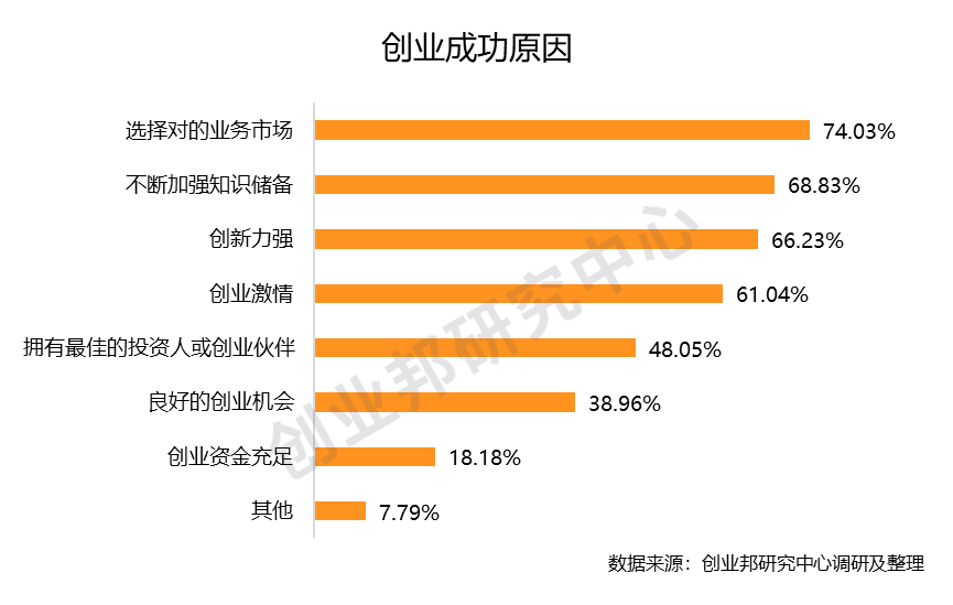 超六成创业者认为个人综合素质(不断加强知识储备、创新力和创业激情)也很关键。