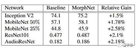 这么好用的东西,Google已经自己用起来了。Google AI团队表示,MorphNet已应用于Google多个生产规模的图像处理模型。