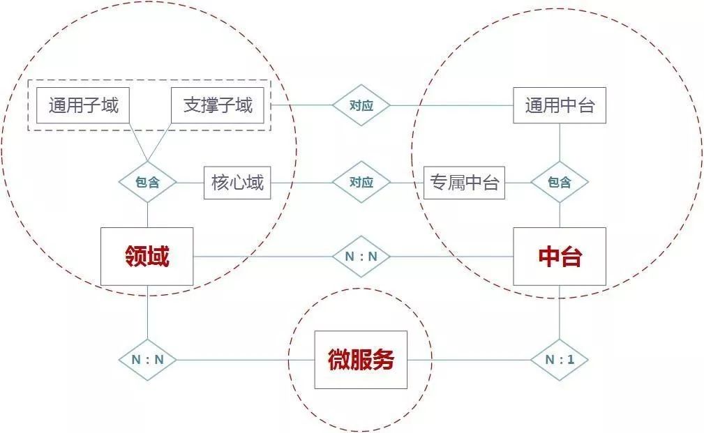 中台、领域以及微服务属于不同层面的内容,稍作分解我们理清他们之间的关系。