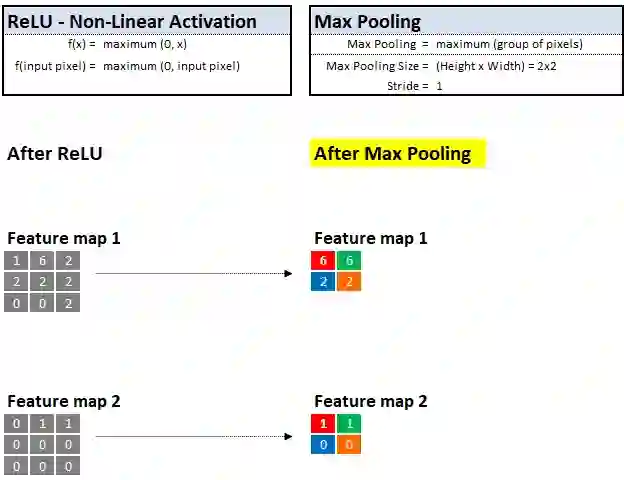 例如,如果他查看一个2x2区域(4像素),他仅仅保留其中值最高的像素,丢弃其余3个像素。这一技术让他可以快速地学习,同时也有助于他概括(而不是“记忆”)可用于未来图像的线索。