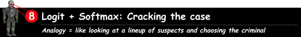 类比:Logit + Softmax就像查看一排嫌疑人,并指出罪犯