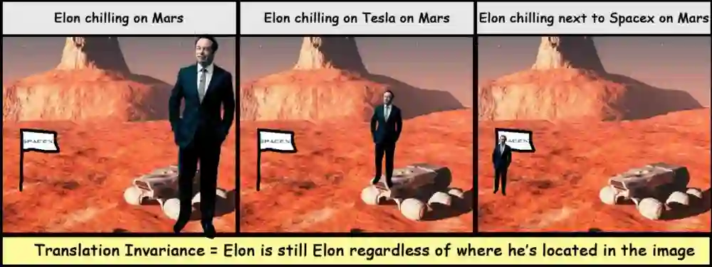 这需要训练卷积神经网络识别Elon的特征,不管Elon在图像中的位置在哪里(平移),也不管Elon在图像中的大小(缩放不变性)。