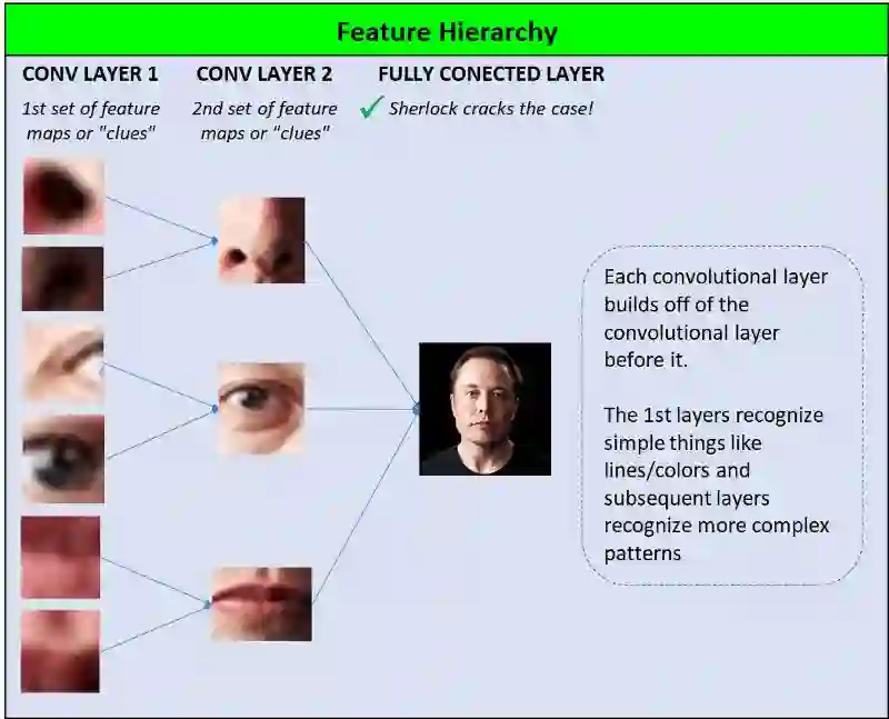 每个卷积层储存基于另一层构建的一组特征映射。最后,夏洛克组合所有线索,这样他就可以破案了(识别目标)。