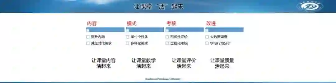 王杨教授分享了如何将慕课与传统课程嫁接,通过混合式教学使传统课堂变得更加生动和高效,线上线下互通有无,实现学生学习的个性化,从而真正让课堂内容活起来、让课堂教学活起来、让课堂评价活起来、让课堂质量活起来。