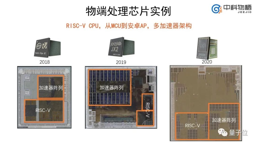 我们从2018年到2020年一共做了大概三代这样的“物端处理器”,这里面我们使用RISC-V做CPU,然后在里面用这种多加速器的结构去实现端侧高算力的需求,基本上就是这样一个演进的过程,这就是我们芯片这方面的主要工作。