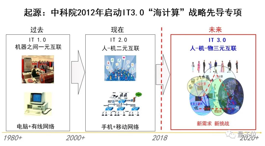 什么叫“海计算”?它大概意思就是说我们不能把所有的数据都送到云上去,要在端上做一个预处理或者做一个过滤,就是好比我们地球上最广袤的是海洋,那么海洋的水蒸发到天上就变成了云,所以海计算跟云计算大概是这样一个对比。所以“海计算”和后来我们所谓的“边缘计算”这些概念是类似的,这是我们中科院在早在10年前对整个端侧的概念的主张。