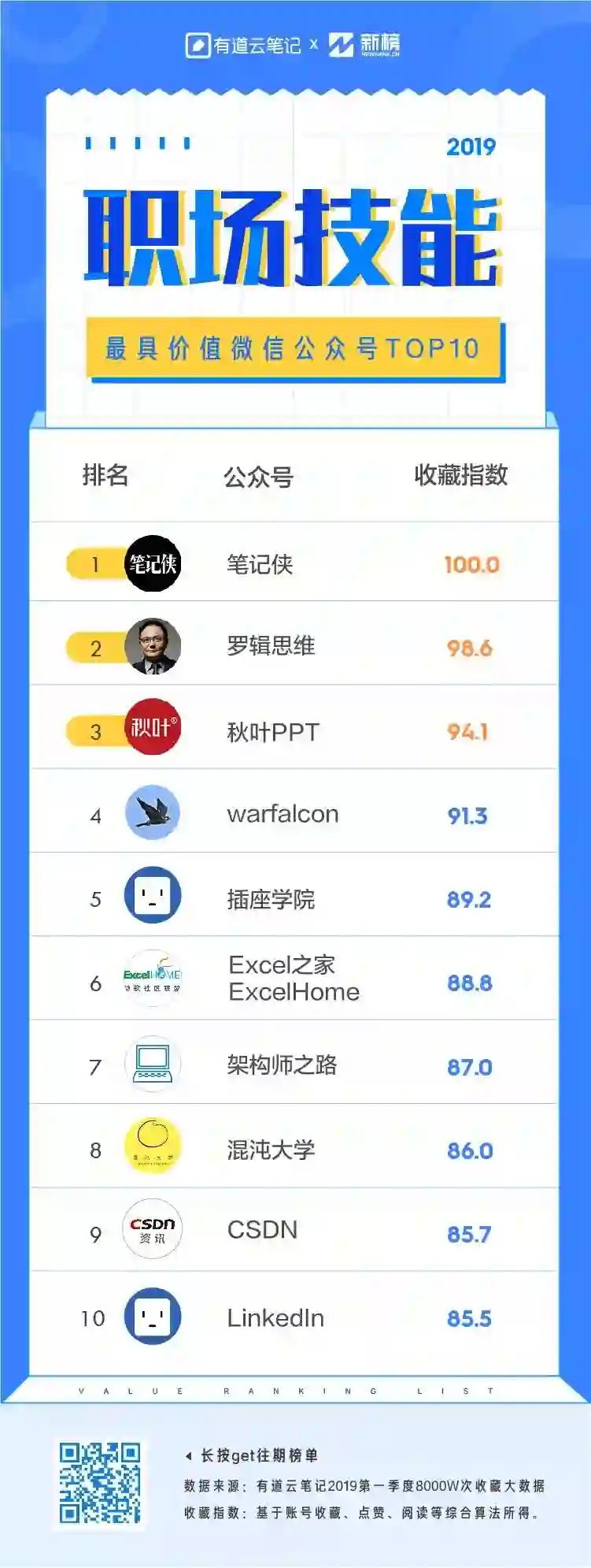 在职场,学习永不落后,「笔记侠」首次登上榜首,成为TOP1,程序员们聚类内容上榜速度明显,代表就是「架构师之路」、「CSDN」等,新上榜的「混沌大学」则偏重职场学习,创新思维汇聚。