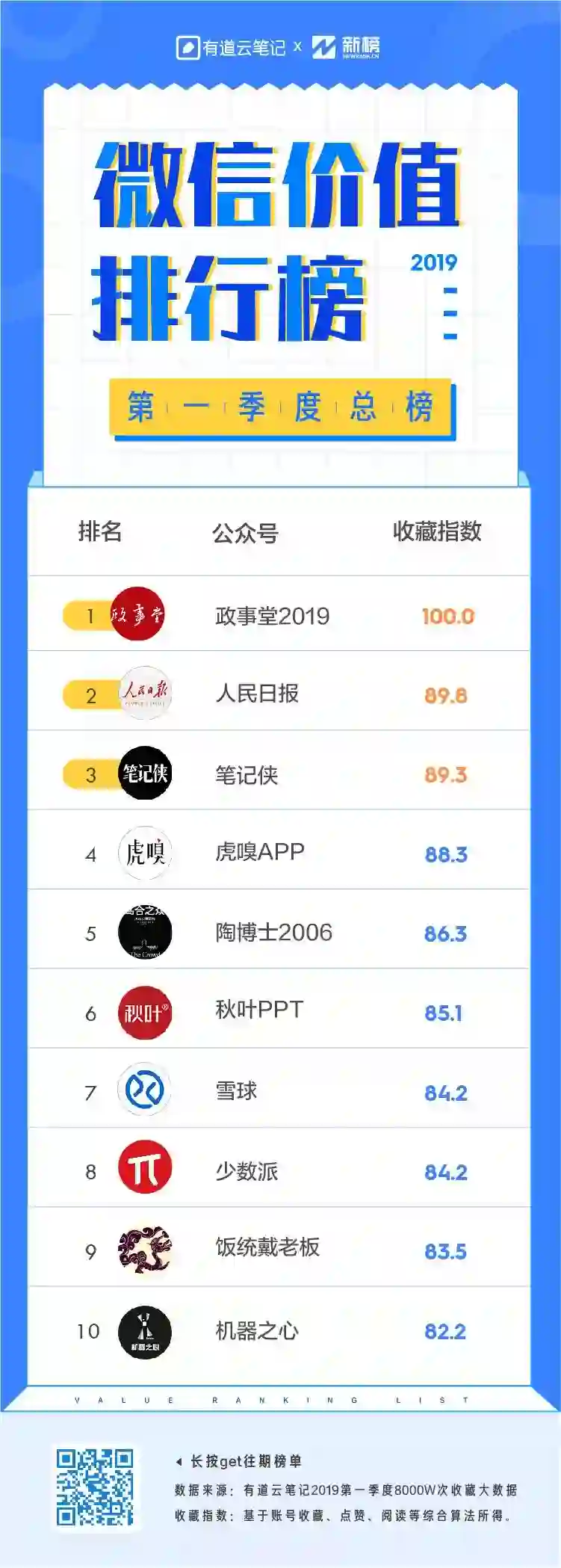 对比去年,新上榜的「陶博士2006」和「少数派」格外抢眼,分别偏重股市投资指南和效率工具应用领域。其中「少数派」的一篇爆款文章《34款Window软件中的神器:看片、安全杀毒、效率神器,他们最好用》干货满满,收藏量数万。